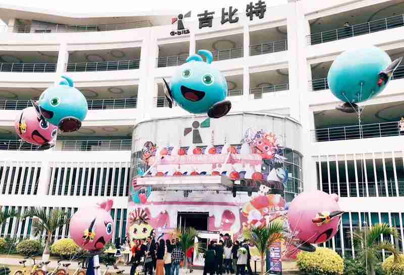 12月15日,,为了庆祝《不思议迷宫》一周岁生日,,,,冈布奥们准备了众多花式庆生活动::::厦门一竞技大楼变身巨型蛋糕、、、女仆小姐姐为大家奉上美味小蛋糕、、更有大头冈布奥飞上天……引来不少冒险者身亲临现场为冈布奥打Call!!